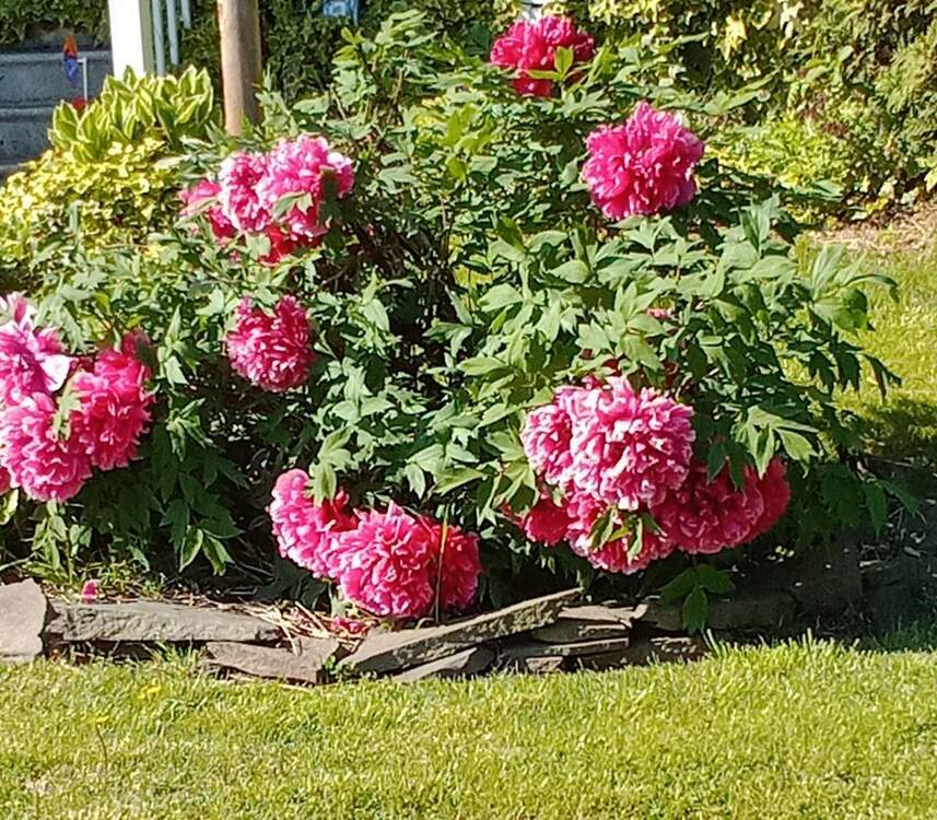 Mein Atem bleibt hängen an der Stille des Morgens während mein Herz jede schwere flauschige Blüte streift die Licht und Liebe versprüht Freude endlos verbreitet hoffnungsvoll kiekt eine kleine Schwärmerei gleicht Zart und leicht weht ihr Duft höchst entzückt durch die Luft getragen von einem warmen Wind Am Platz die Aprilsonne selig grinst Jede majestätische Pfingstrose säuselt verspielt das üppig grüne Blattkleid kräuselt Beglückt ins glänzende purpurrot blicken An den Zauber des Frühlings sich erquicken ©Donna H. 25. April 2023 (Text/Bild)
