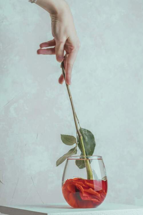 Ertränkte Rose... Ein paar Gläschen entfachten die Glut. Linderten auch die stille Wut. Sie fragte nicht mehr nach dem Warum. Ihr Gemüt wurde angenehm stumm. Schleichende Sucht erfasste den Sinn. In ihr gefangen gab sie sich hin. Diese Methode half ein paar Stunden. Dann quälten wieder die alten Wunden. Ein schwacher Impuls ganz tief in ihr. Noch einen Schritt und ich verlier` Bernd Tunn Tetje Bild von Aellgie auf Pexels -